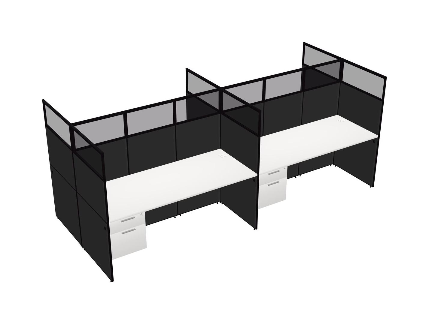 White Shared Rectangular Office Cubicle Panel System With Hanging Drawers For 4 Persons