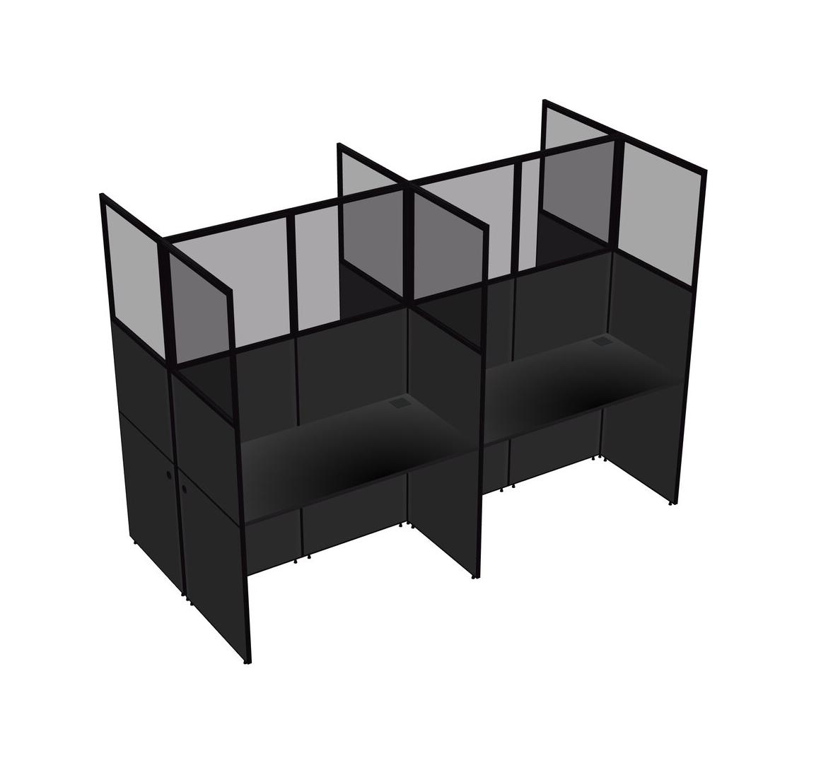 Black Shared Rectangular Office Cubicle Panel System For 4 Persons