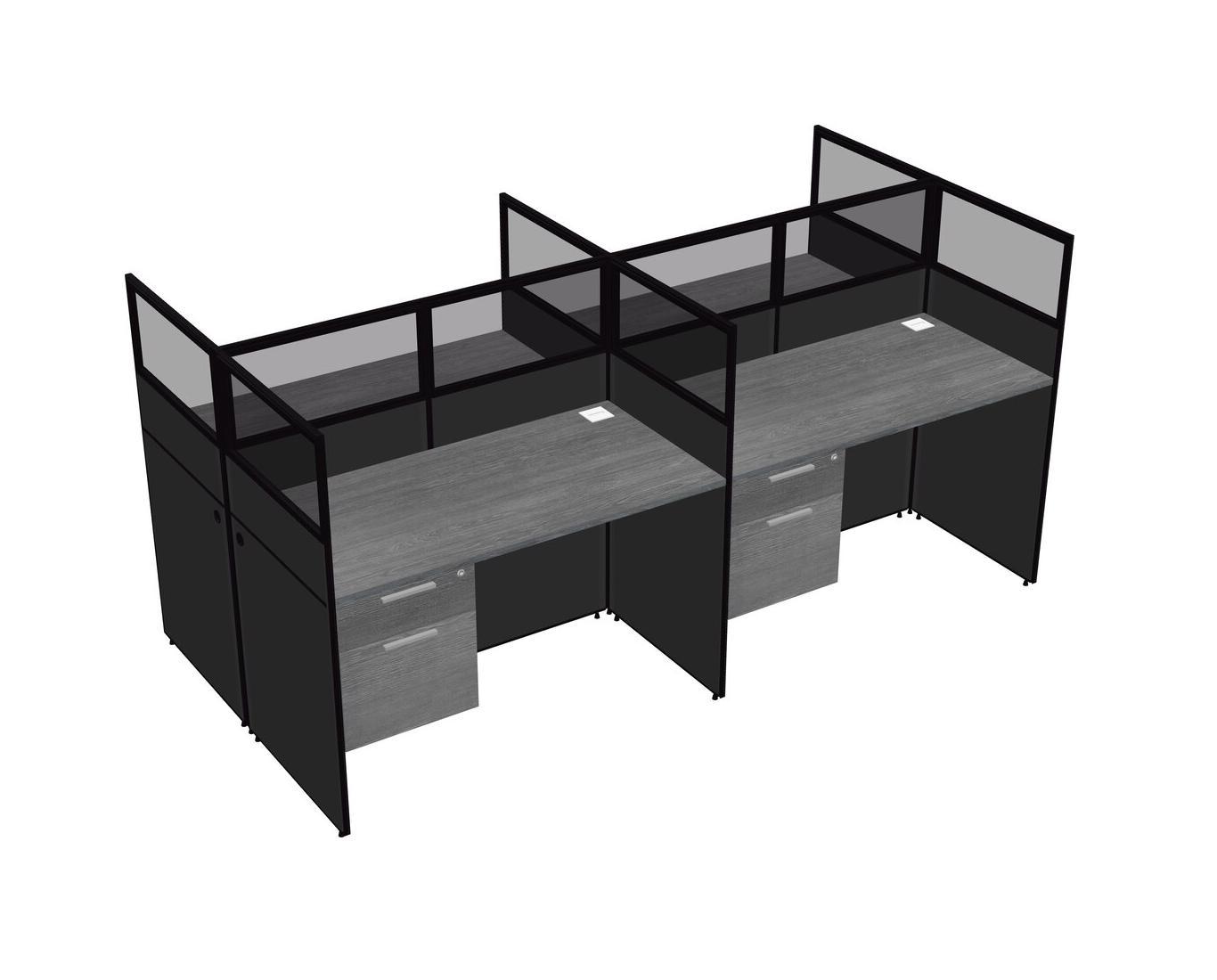 Grey Shared Rectangular Office Cubicle Panel System With Hanging Drawers For 4 Persons