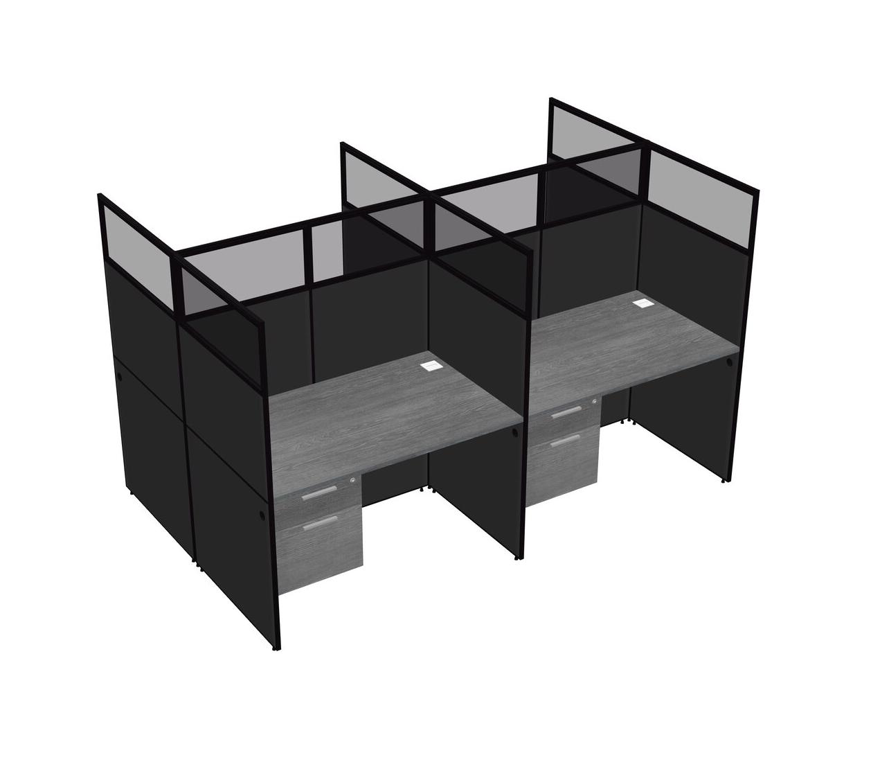 Grey Shared Rectangular Office Cubicle Panel System With Hanging Drawers For 4 Persons