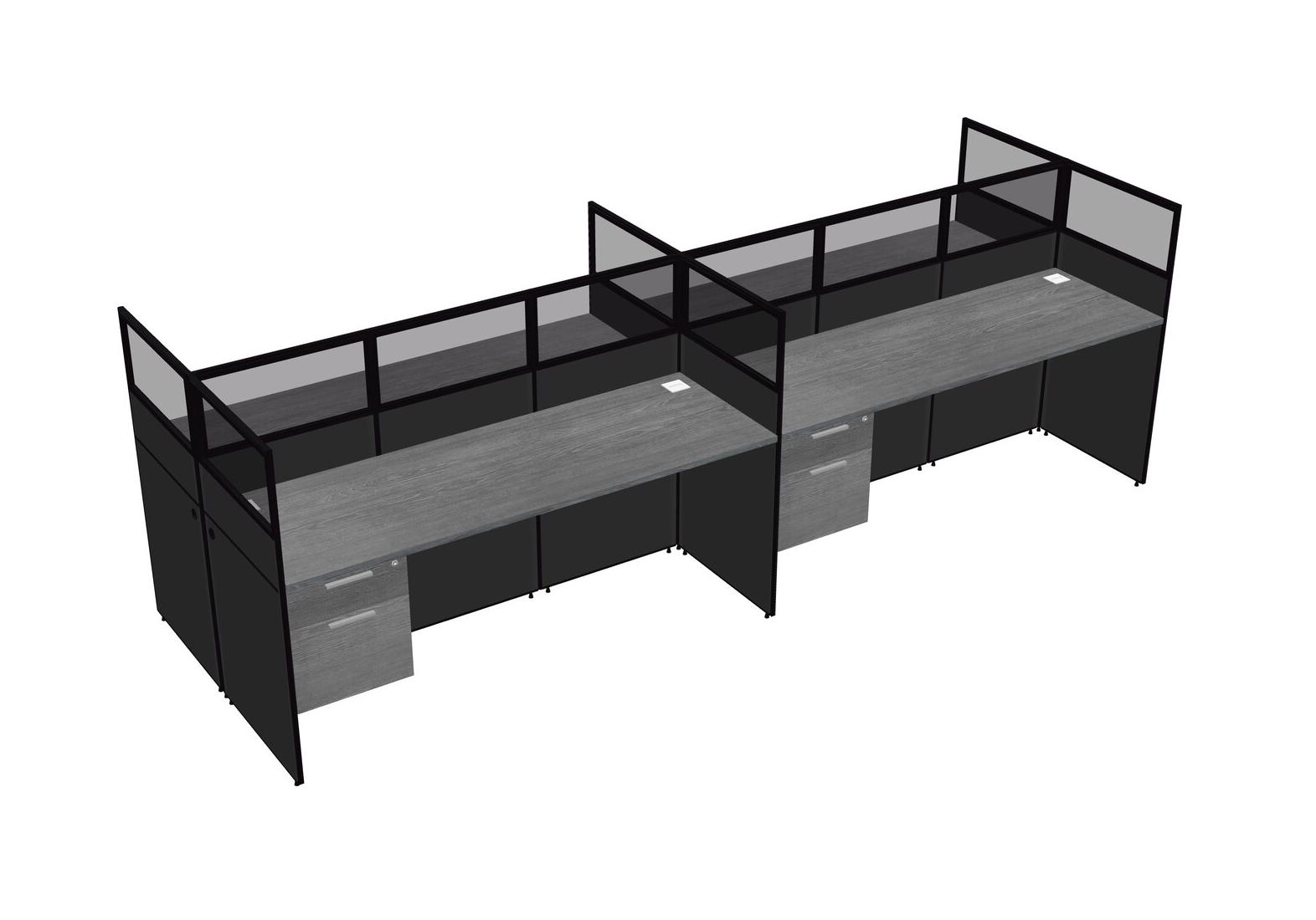 Grey Shared Rectangular Office Cubicle Panel System With Hanging Drawers For 4 Persons