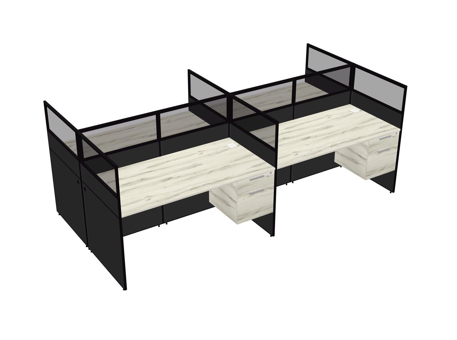 Heinne Holz Shared Rectangular Office Cubicle Panel System With Hanging Drawers For 4 Persons