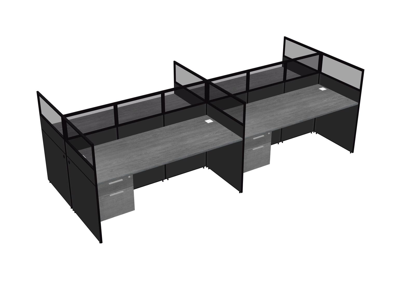 Grey Shared Rectangular Office Cubicle Panel System With Hanging Drawers For 4 Persons