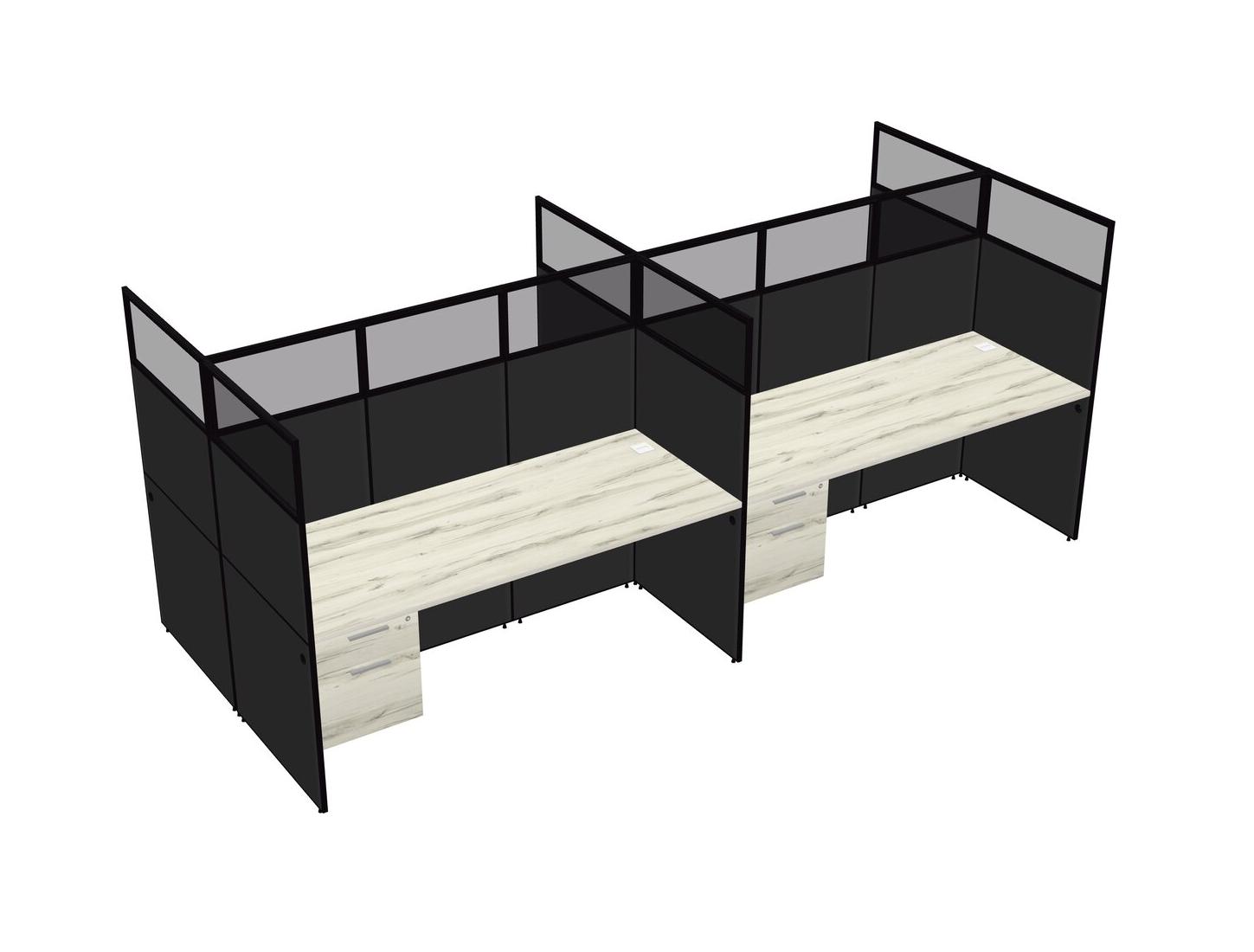 Heinne Holz Shared Rectangular Office Cubicle Panel System With Hanging Drawers For 4 Persons