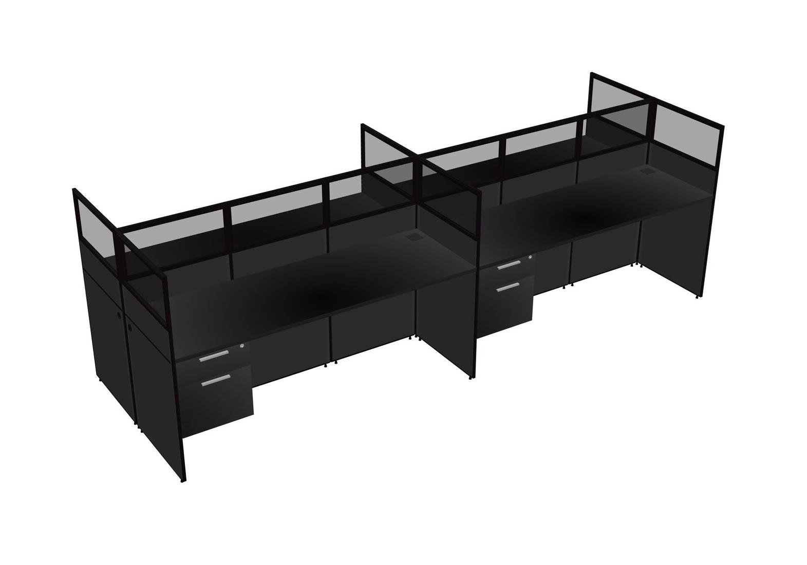 Black Shared Rectangular Office Cubicle Panel System With Hanging Drawers For 4 Persons