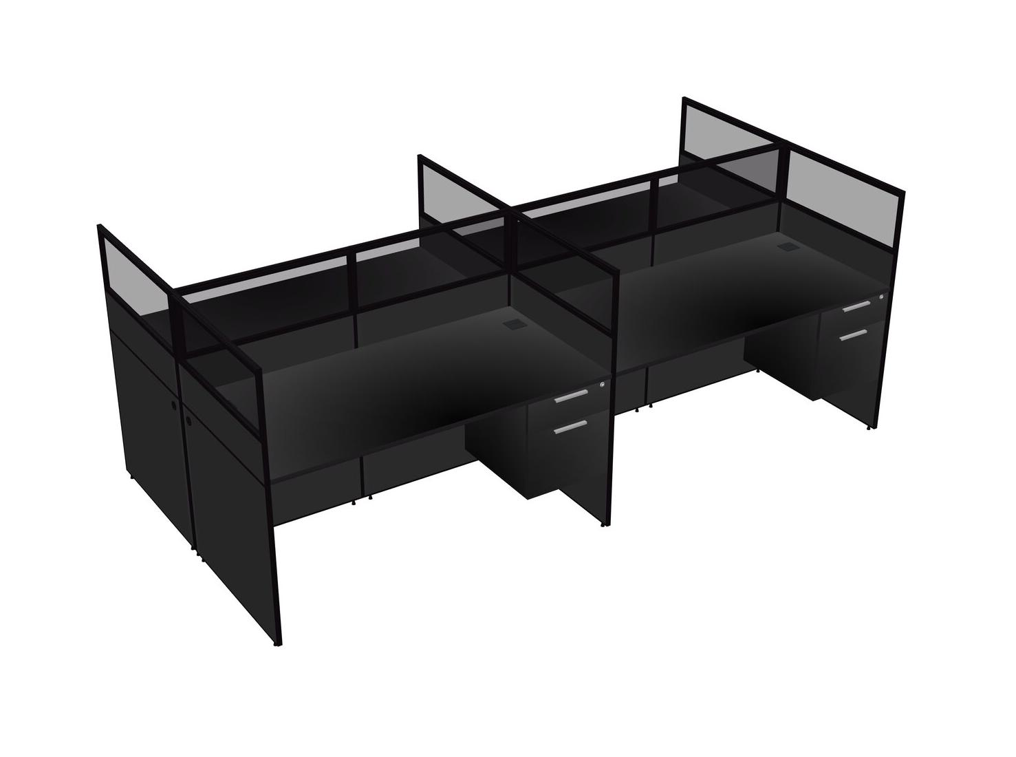 Black Shared Rectangular Office Cubicle Panel System With Hanging Drawers For 4 Persons