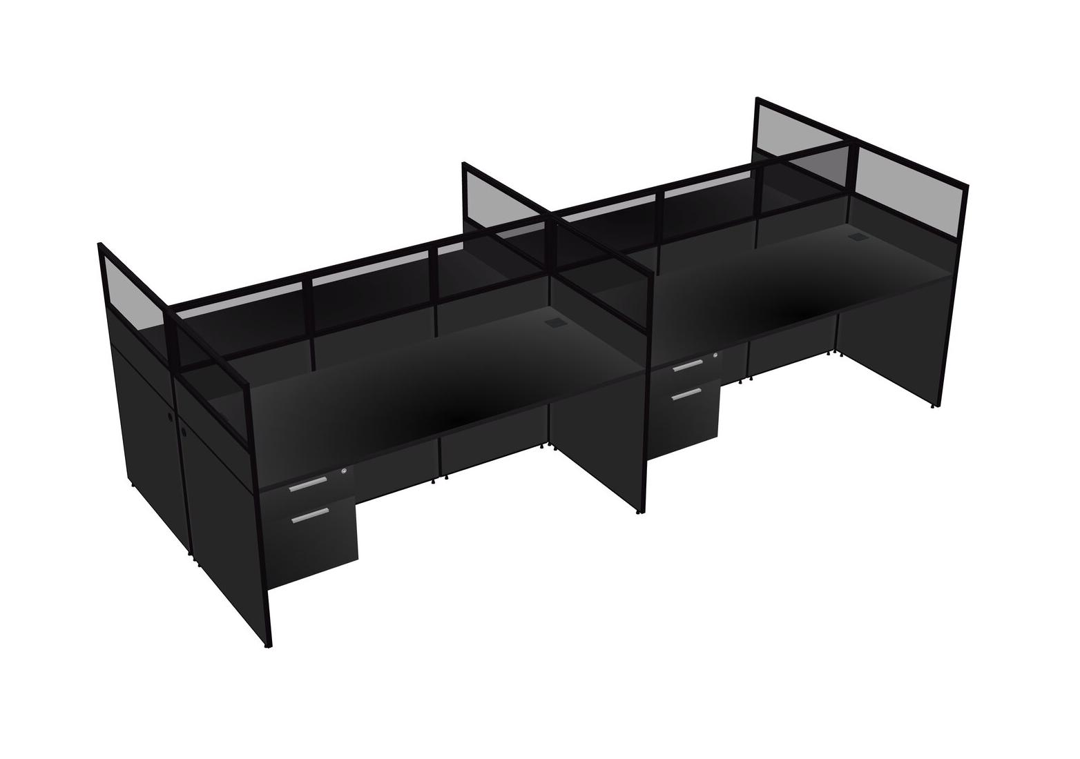 Black Shared Rectangular Office Cubicle Panel System With Hanging Drawers For 4 Persons