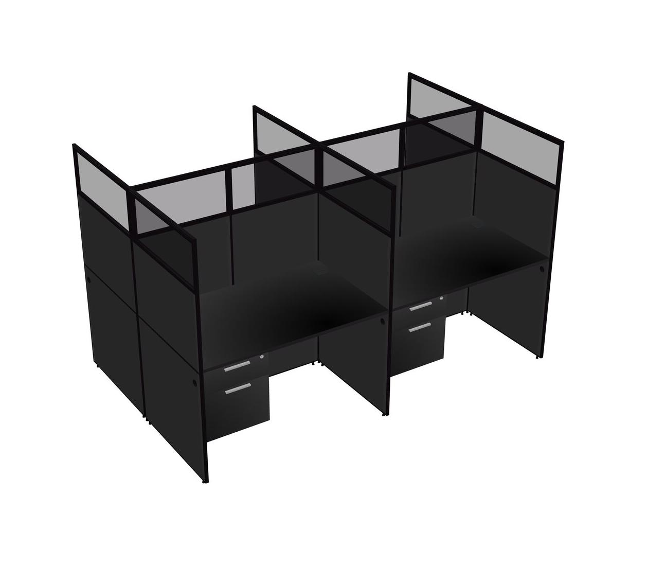 Black Shared Rectangular Office Cubicle Panel System With Hanging Drawers For 4 Persons