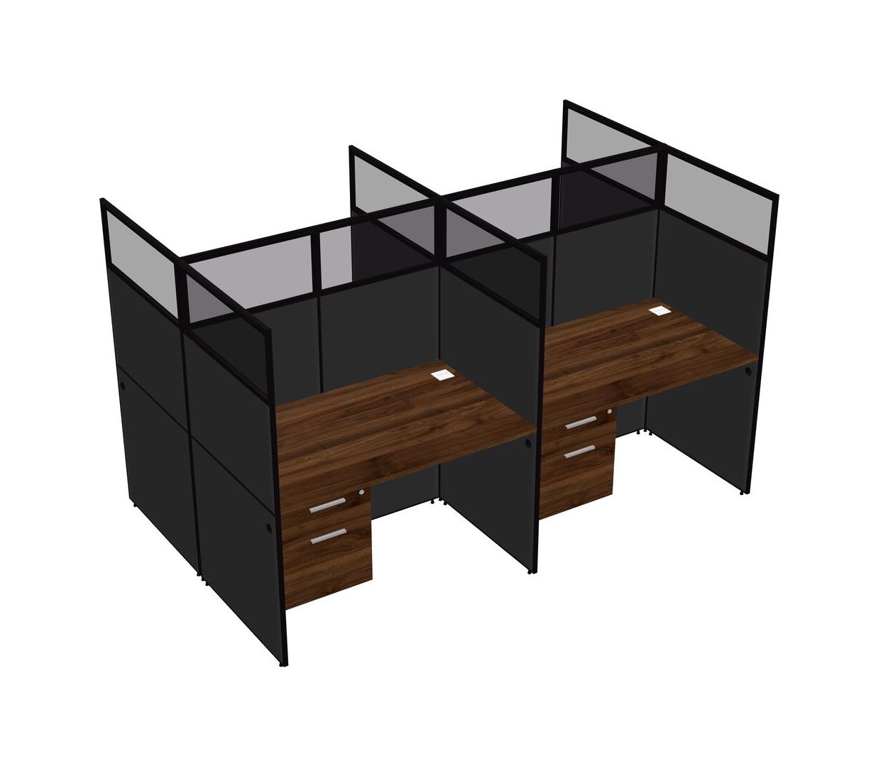 Columbia Walnut Shared Rectangular Office Cubicle Panel System With Hanging Drawers For 4 Persons