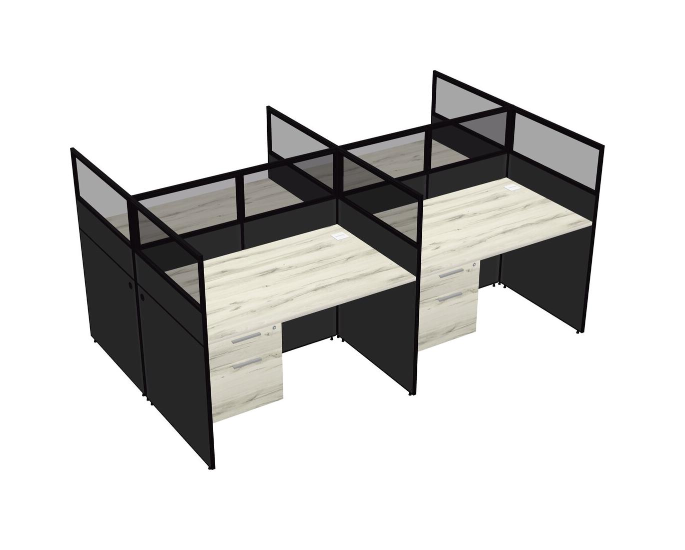Heinne Holz Shared Rectangular Office Cubicle Panel System With Hanging Drawers For 4 Persons