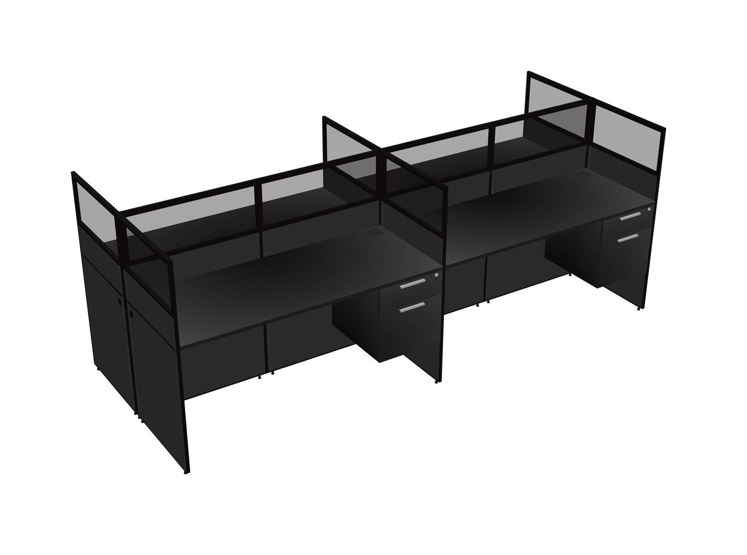 Black Shared Rectangular Office Cubicle Panel System With Hanging Drawers For 4 Persons