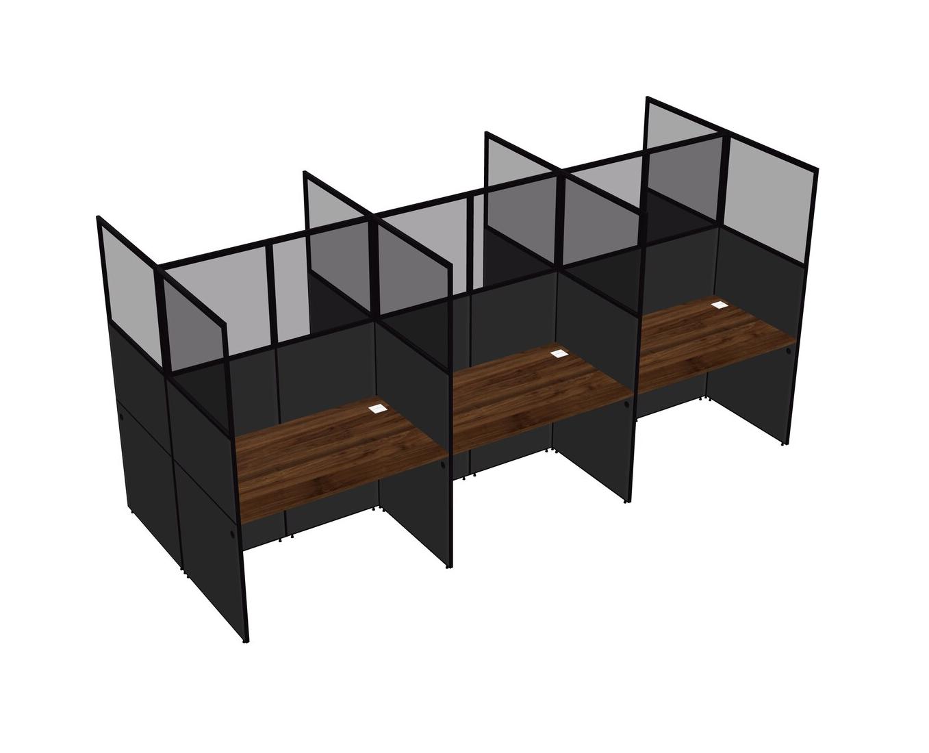 Columbia Walnut Shared Rectangular Office Cubicle Panel System For 6 Persons