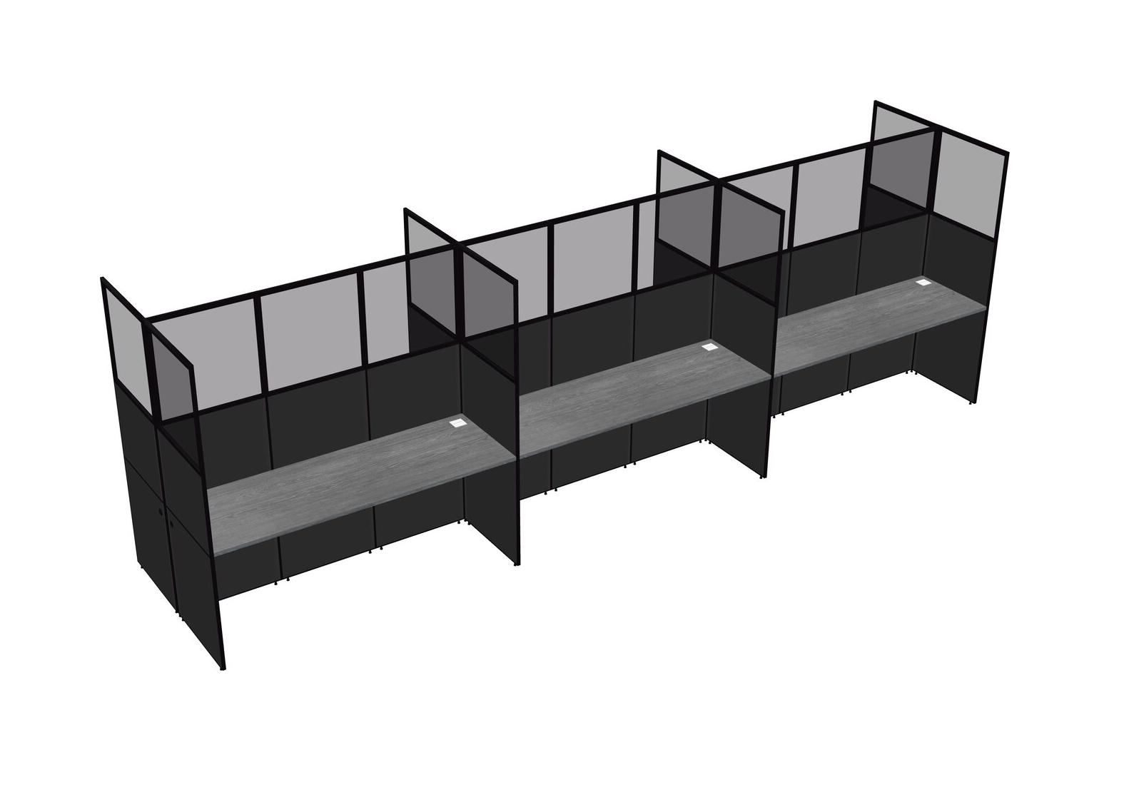 Grey Shared Rectangular Office Cubicle Panel System For 6 Persons