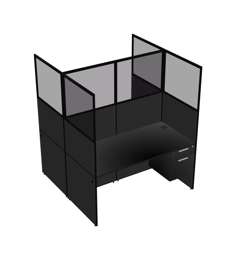 Black Shared Rectangular Office Cubicle Panel System With Hanging Drawers For 2 Persons
