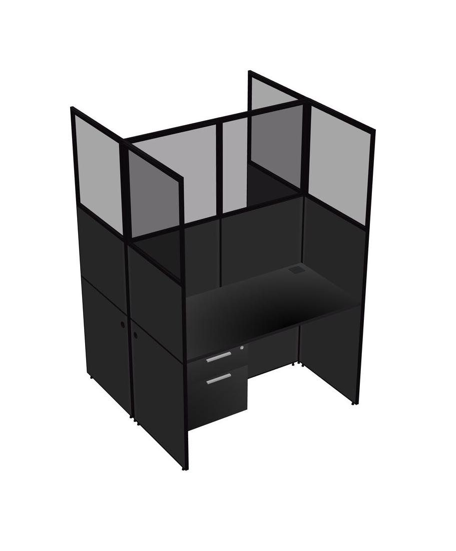 Black Shared Rectangular Office Cubicle Panel System With Hanging Drawers For 2 Persons
