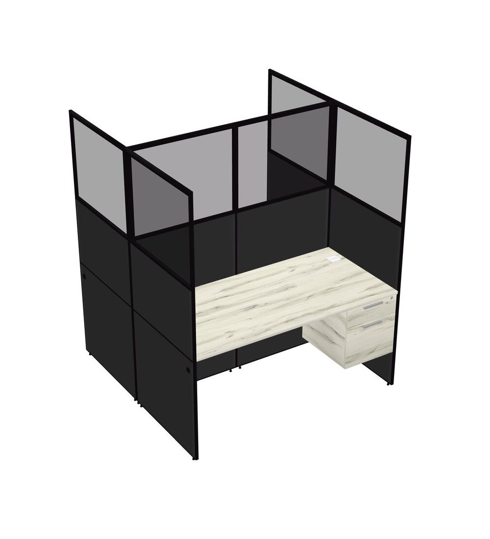 Heinne Holz Shared Rectangular Office Cubicle Panel System With Hanging Drawers For 2 Persons