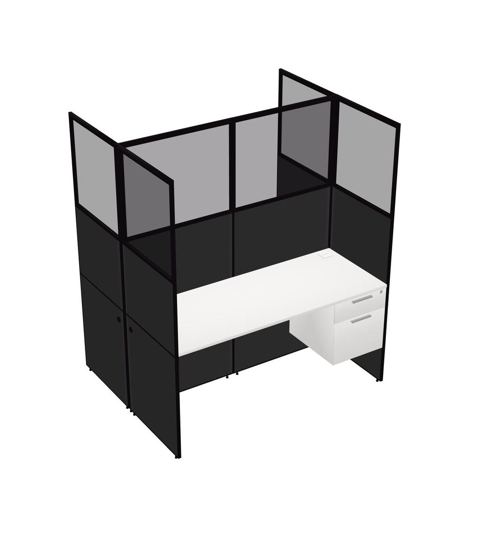 White Shared Rectangular Office Cubicle Panel System With Hanging Drawers For 2 Persons
