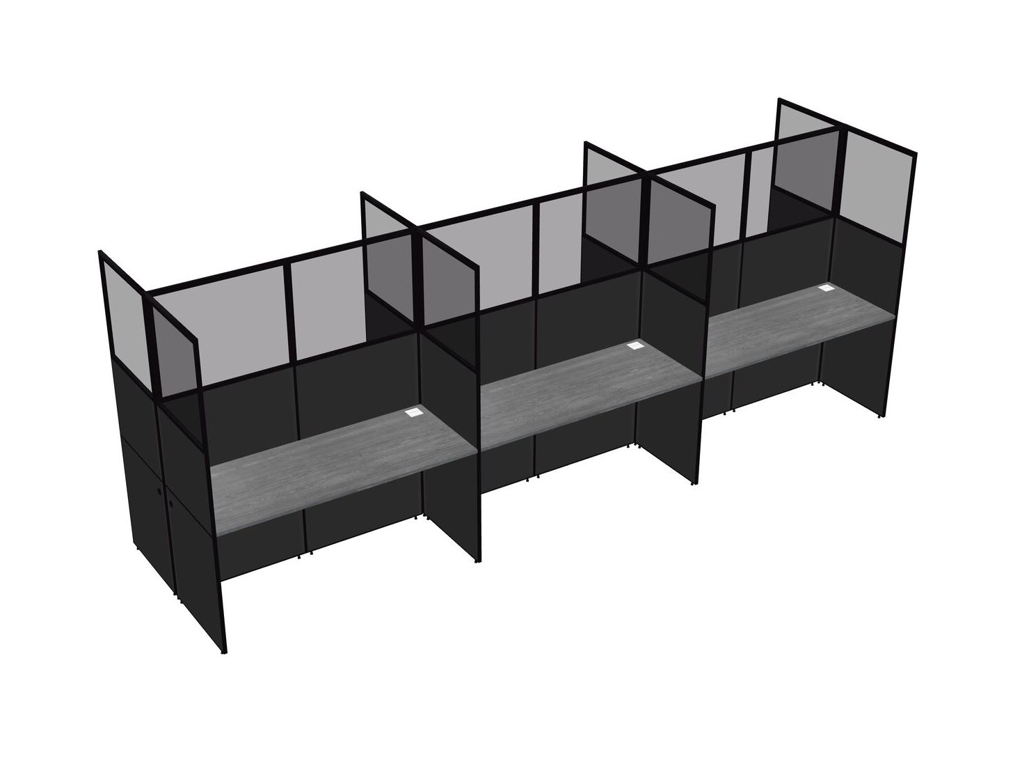 Grey Shared Rectangular Office Cubicle Panel System For 6 Persons