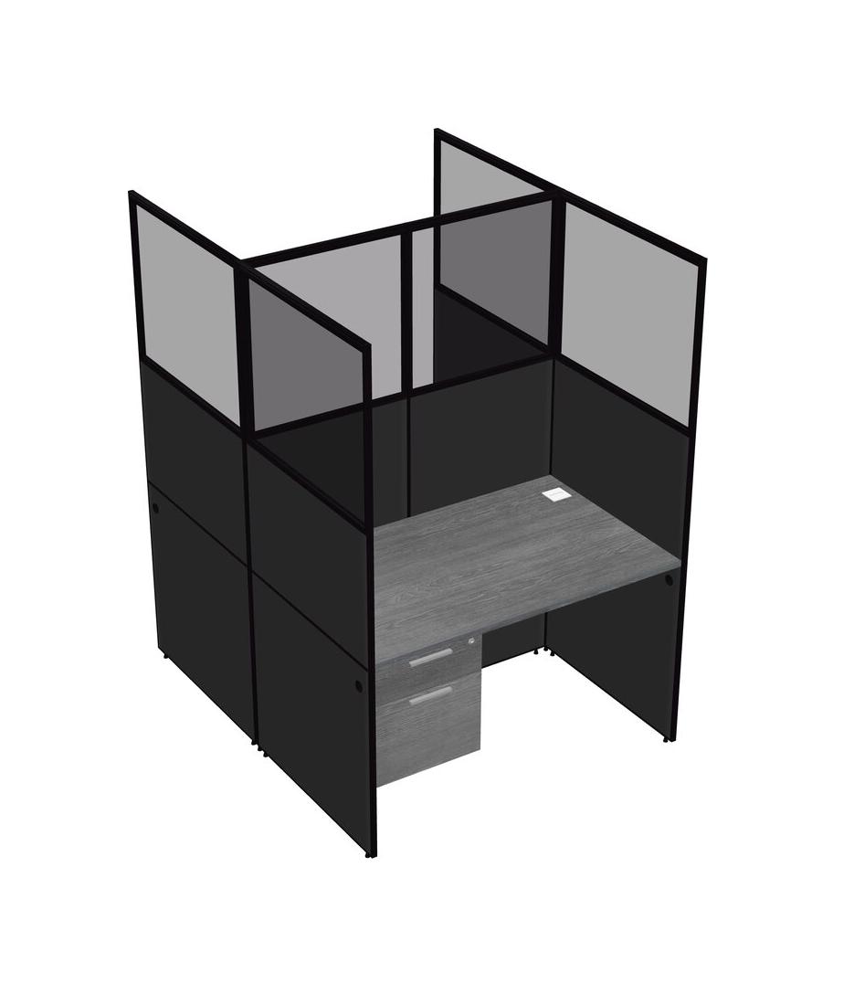Grey Shared Rectangular Office Cubicle Panel System With Hanging Drawers For 2 Persons