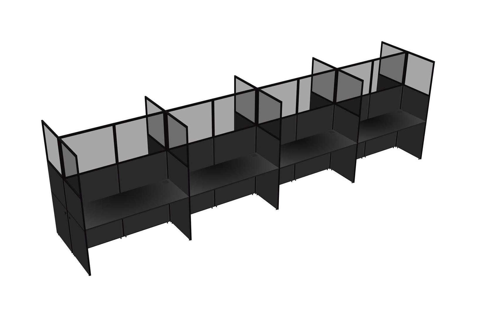 Black Shared Rectangular Office Cubicle Panel System For 8 Persons