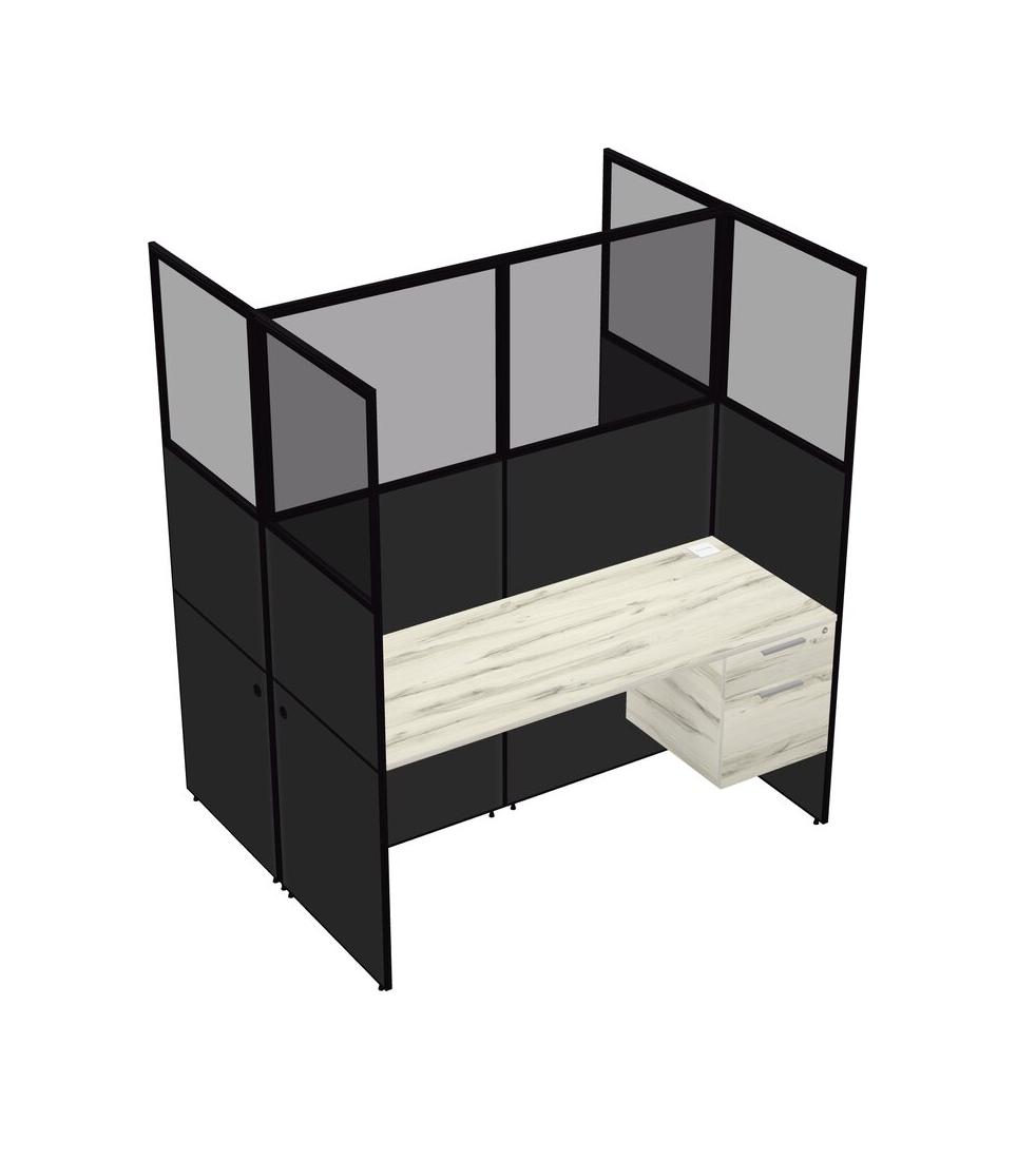 Heinne Holz Shared Rectangular Office Cubicle Panel System With Hanging Drawers For 2 Persons