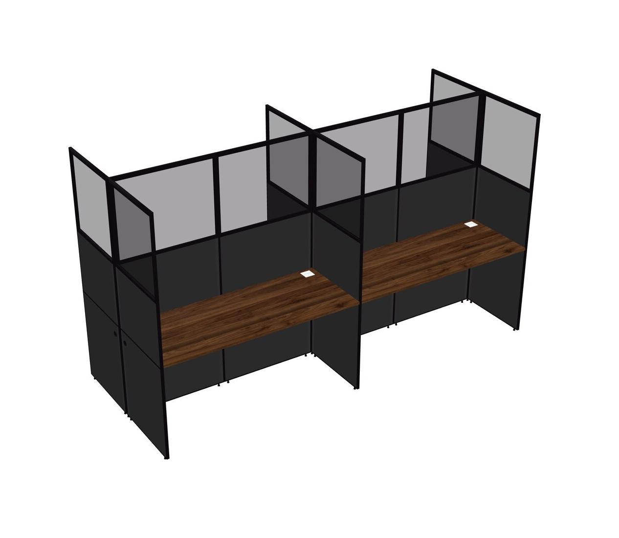 Columbia Walnut Shared Rectangular Office Cubicle Panel System For 4 Persons