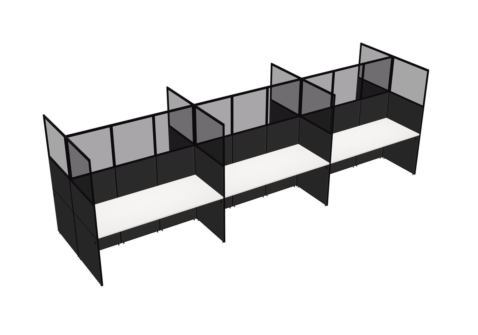 White Shared Rectangular Office Cubicle Panel System For 6 Persons