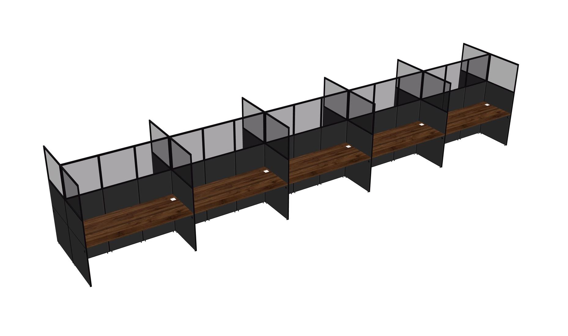 Columbia Walnut Shared Rectangular Office Cubicle Panel System For 10 Persons