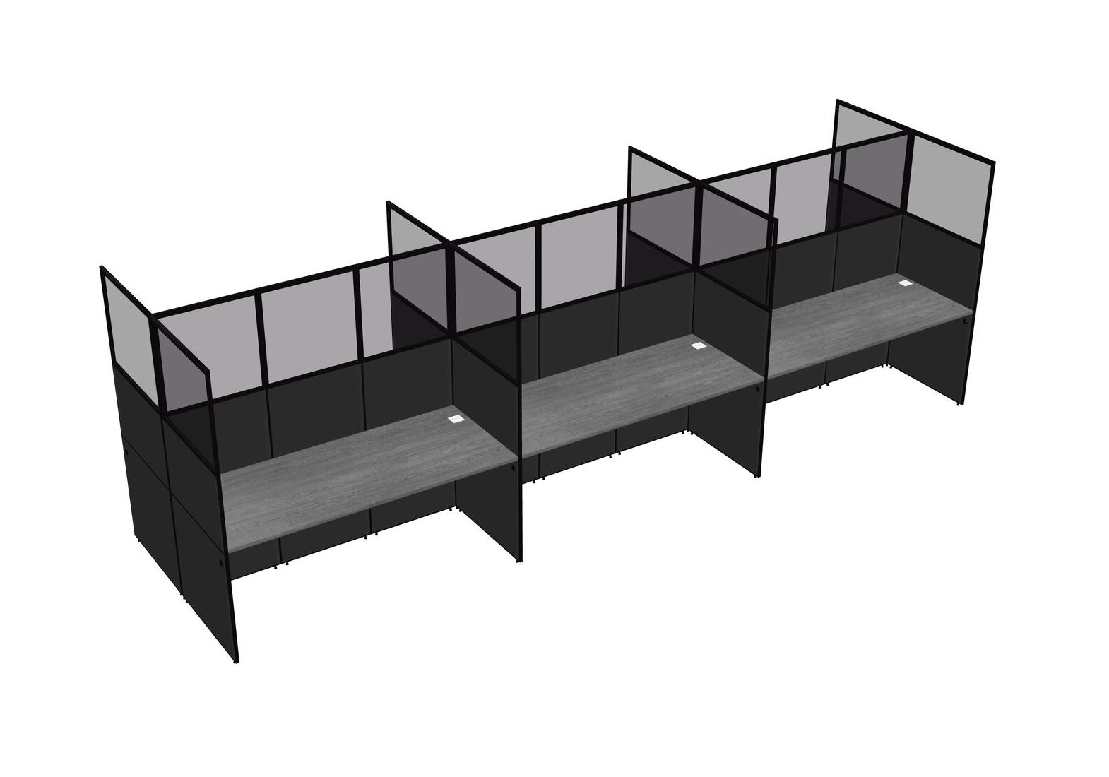 Grey Shared Rectangular Office Cubicle Panel System For 6 Persons