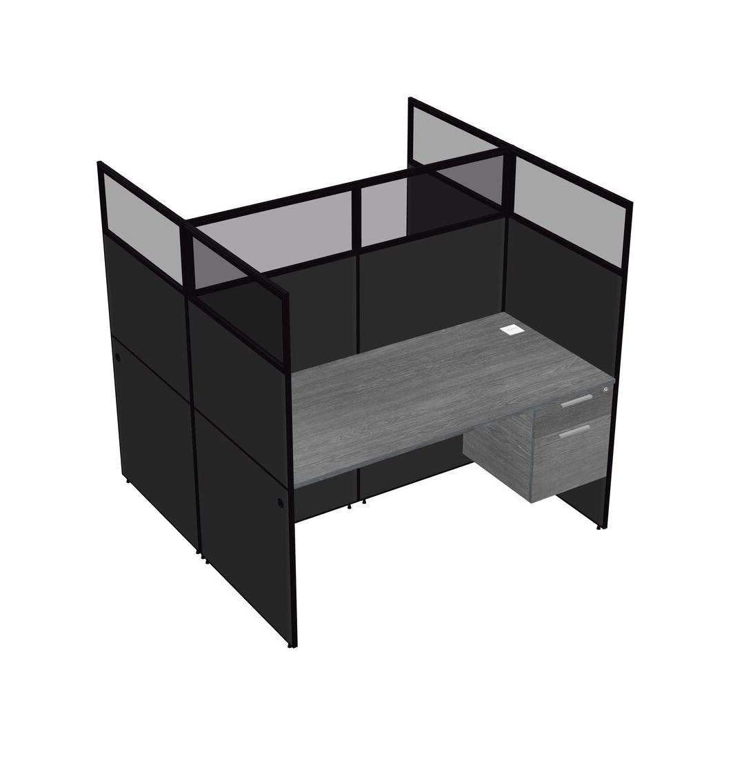 Grey Shared Rectangular Office Cubicle Panel System With Hanging Drawers For 2 Persons