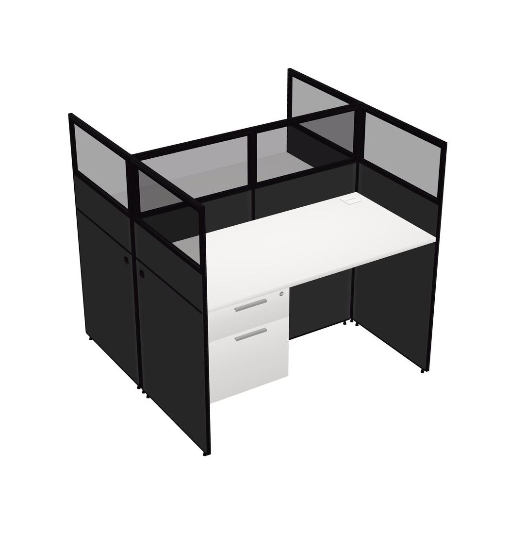 White Shared Rectangular Office Cubicle Panel System With Hanging Drawers For 2 Persons