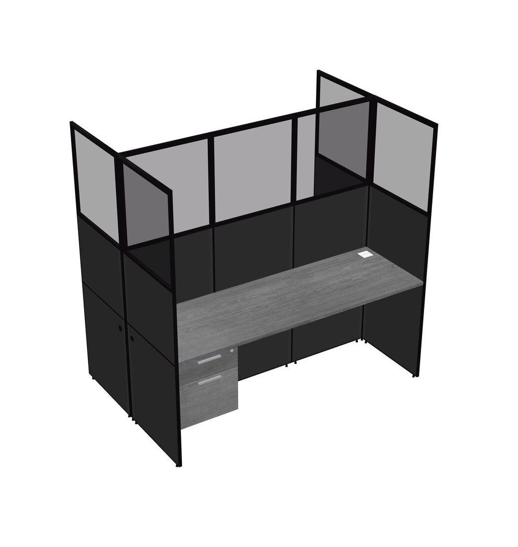 Grey Shared Rectangular Office Cubicle Panel System With Hanging Drawers For 2 Persons