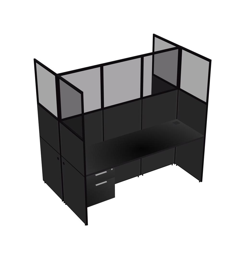 Black Shared Rectangular Office Cubicle Panel System With Hanging Drawers For 2 Persons