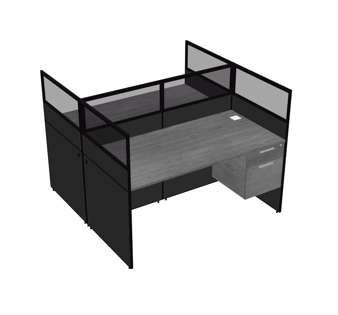 Grey Shared Rectangular Office Cubicle Panel System With Hanging Drawers For 2 Persons