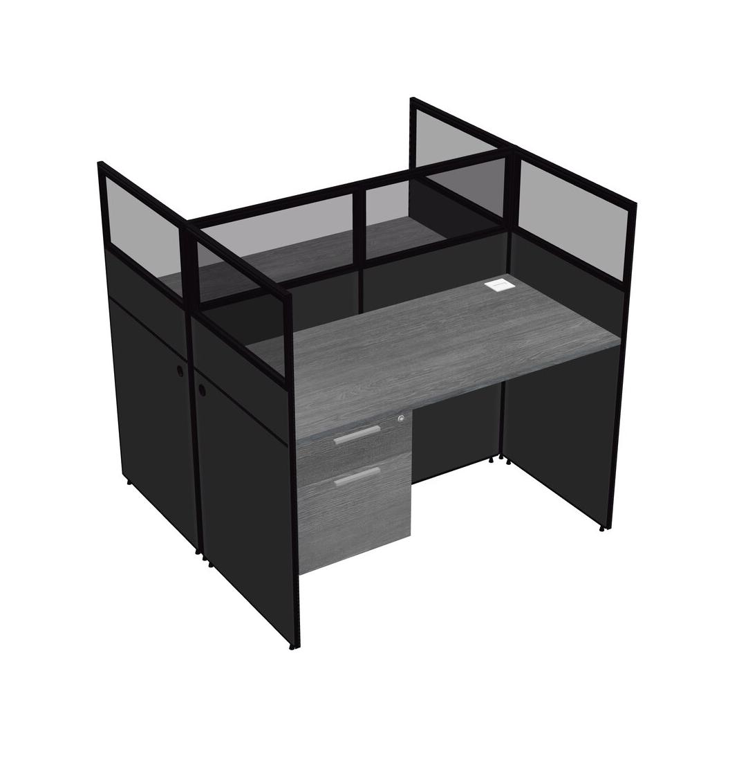 Grey Shared Rectangular Office Cubicle Panel System With Hanging Drawers For 2 Persons
