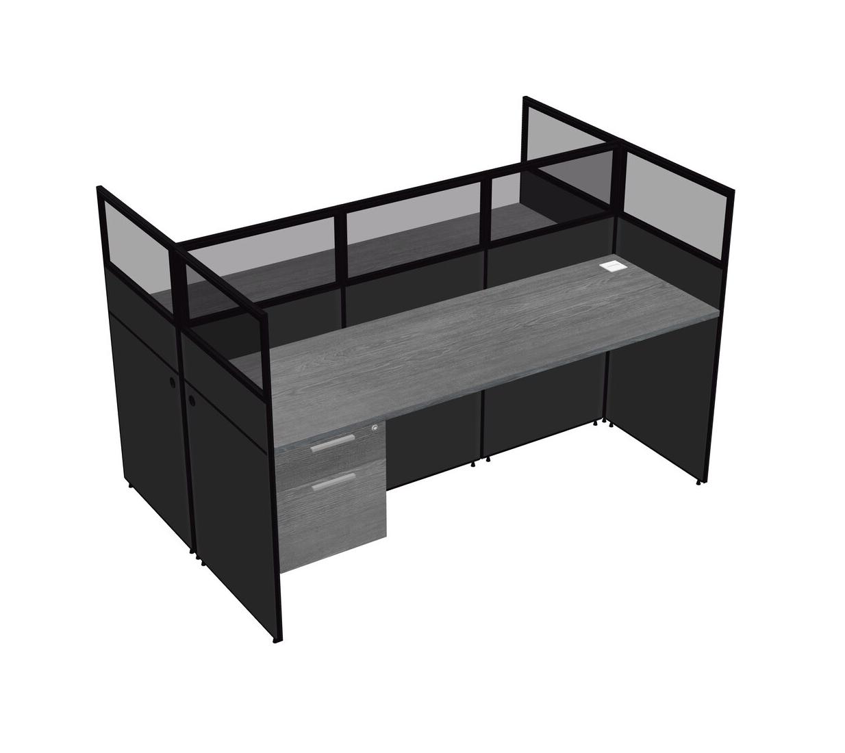 Grey Shared Rectangular Office Cubicle Panel System With Hanging Drawers For 2 Persons