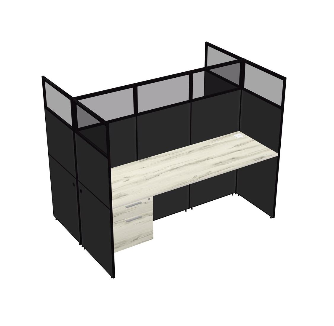 Heinne Holz Shared Rectangular Office Cubicle Panel System With Hanging Drawers For 2 Persons