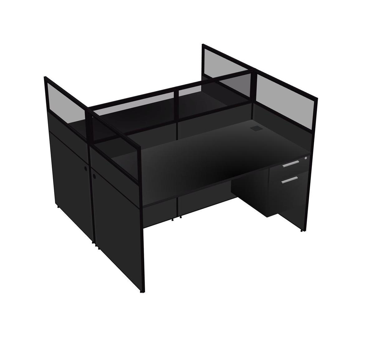 Black Shared Rectangular Office Cubicle Panel System With Hanging Drawers For 2 Persons
