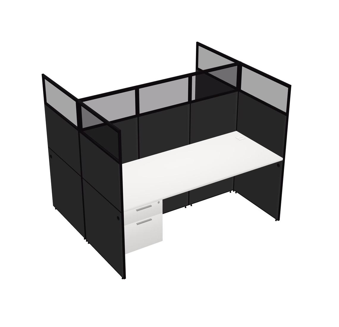 White Shared Rectangular Office Cubicle Panel System With Hanging Drawers For 2 Persons