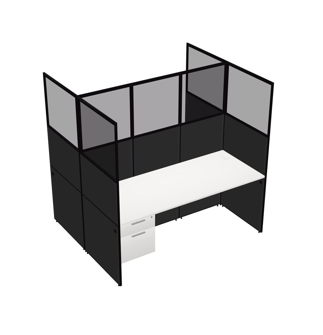 White Shared Rectangular Office Cubicle Panel System With Hanging Drawers For 2 Persons