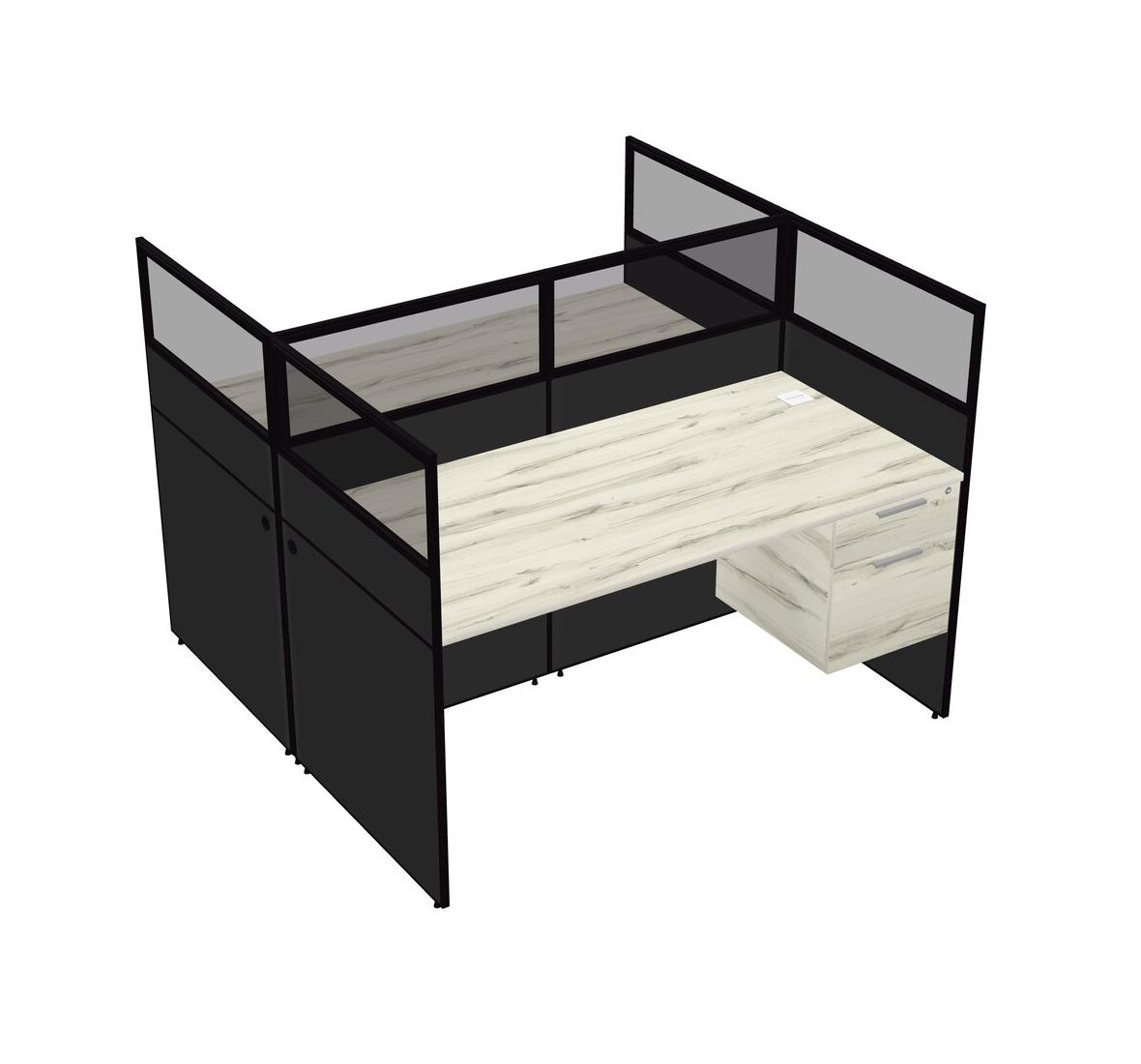 Heinne Holz Shared Rectangular Office Cubicle Panel System With Hanging Drawers For 2 Persons