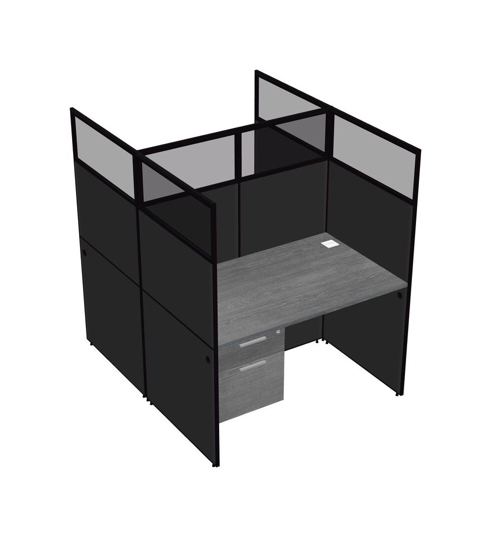 Grey Shared Rectangular Office Cubicle Panel System With Hanging Drawers For 2 Persons