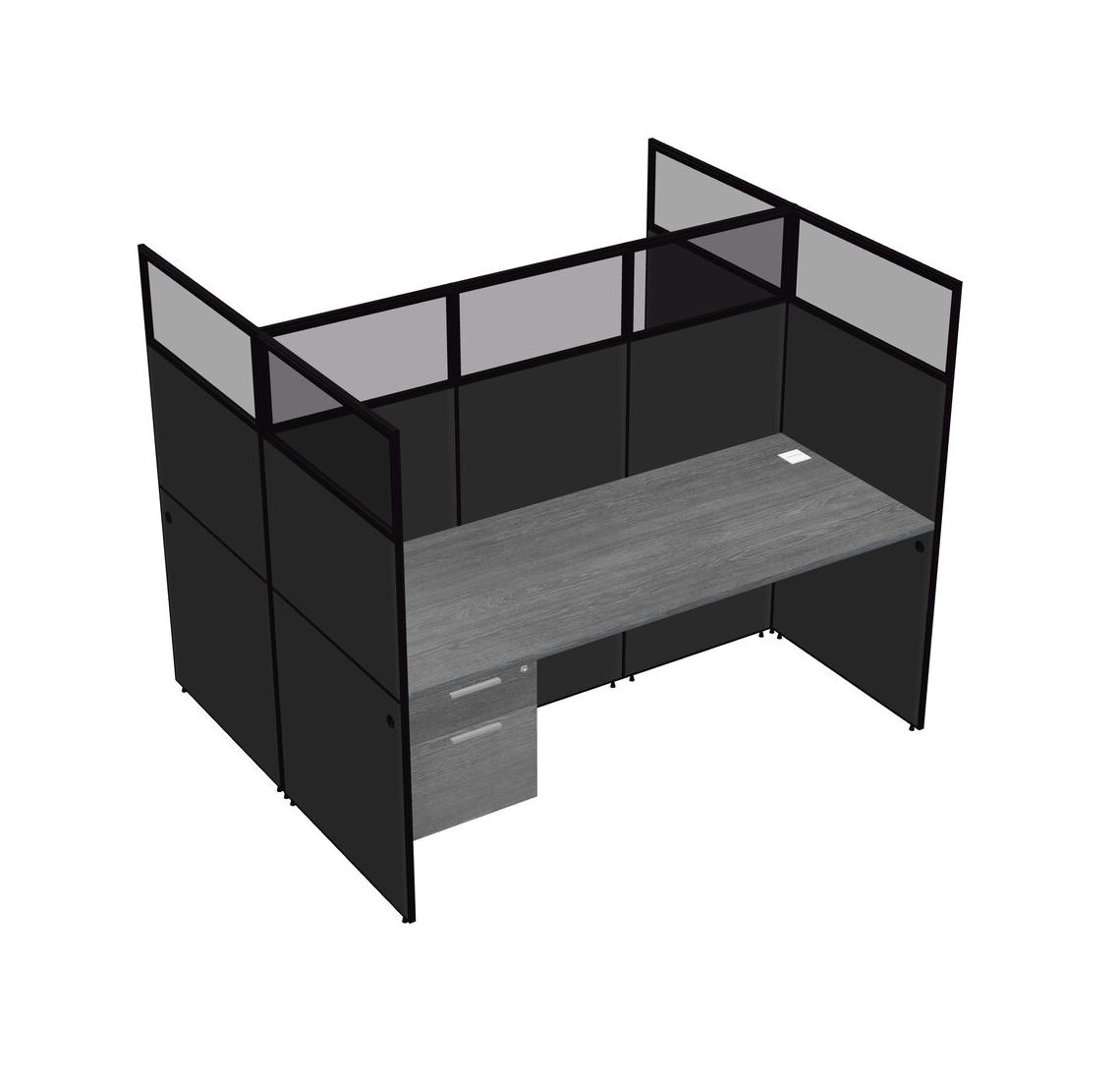 Grey Shared Rectangular Office Cubicle Panel System With Hanging Drawers For 2 Persons