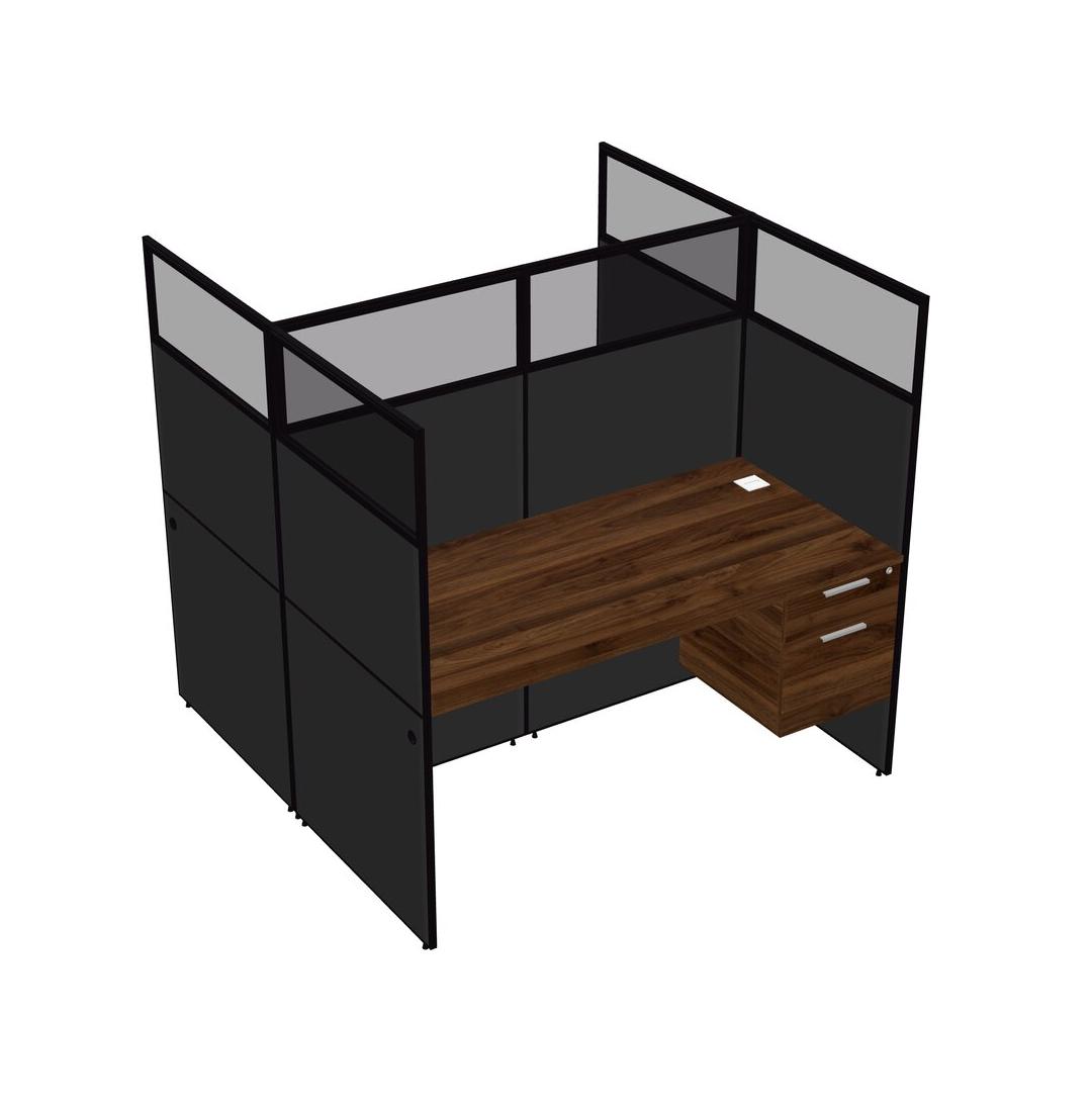 Columbia Walnut Shared Rectangular Office Cubicle Panel System With Hanging Drawers For 2 Persons