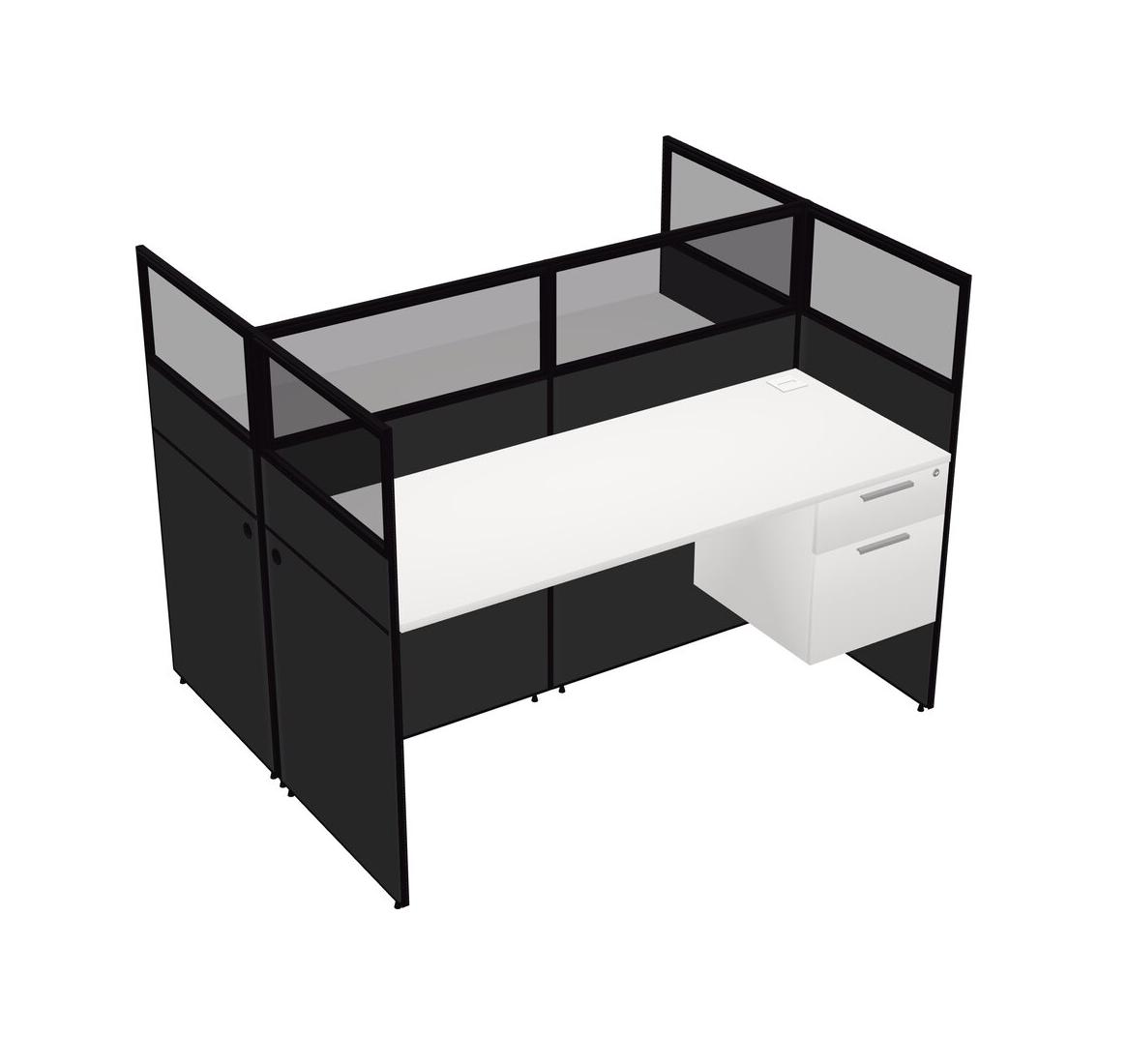 White Shared Rectangular Office Cubicle Panel System With Hanging Drawers For 2 Persons