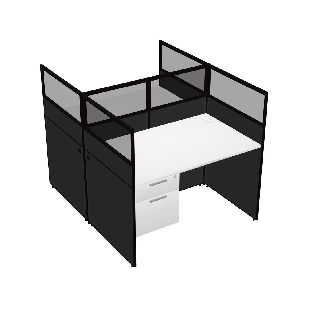 White Shared Rectangular Office Cubicle Panel System With Hanging Drawers For 2 Persons