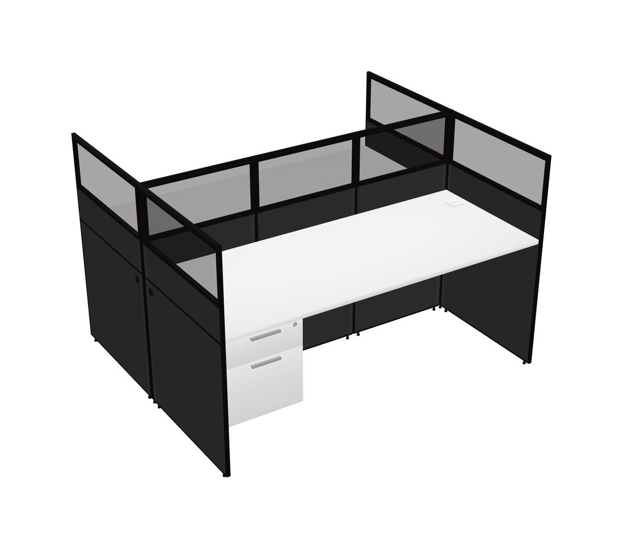 White Shared Rectangular Office Cubicle Panel System With Hanging Drawers For 2 Persons
