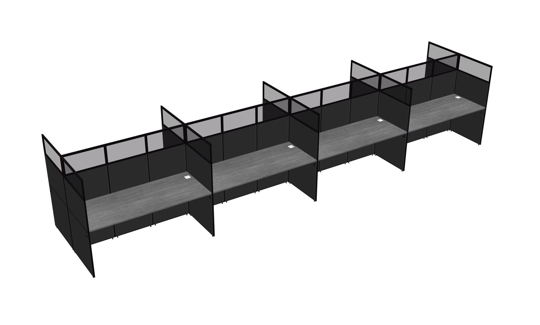 Grey Shared Rectangular Office Cubicle Panel System For 8 Persons