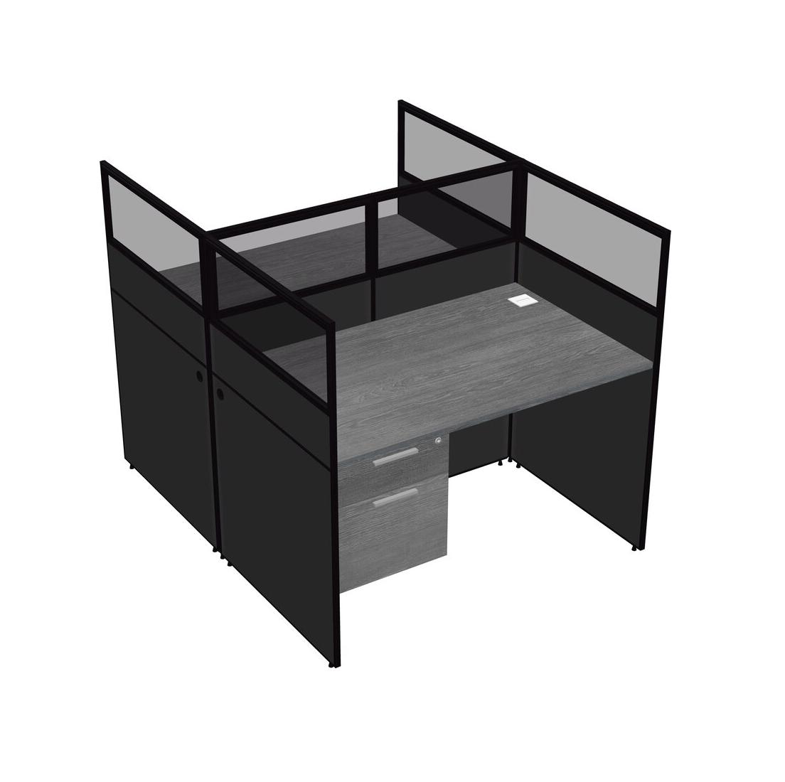 Grey Shared Rectangular Office Cubicle Panel System With Hanging Drawers For 2 Persons