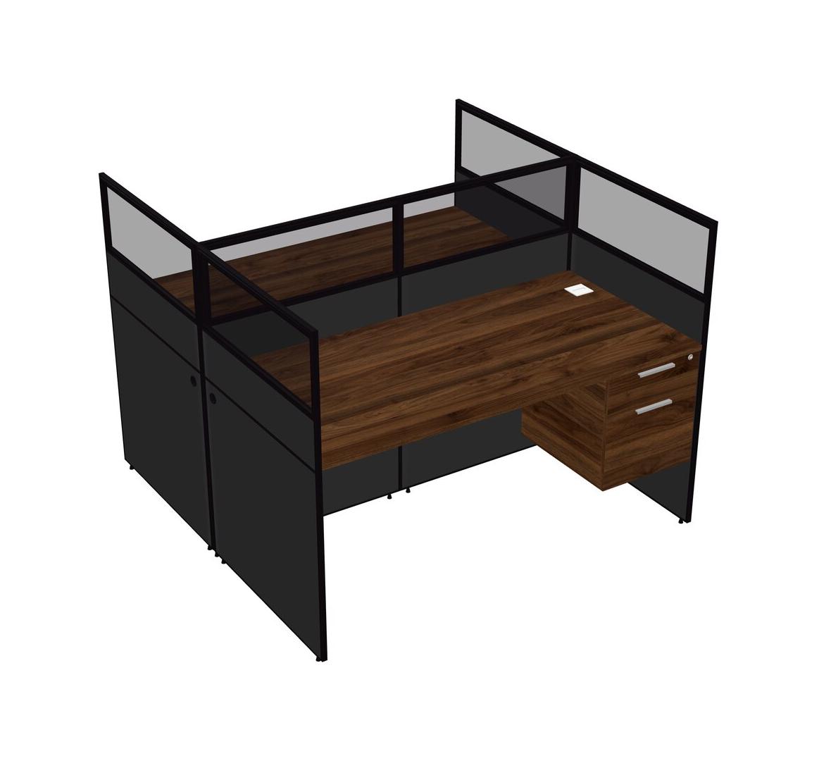 Columbia Walnut Shared Rectangular Office Cubicle Panel System With Hanging Drawers For 2 Persons